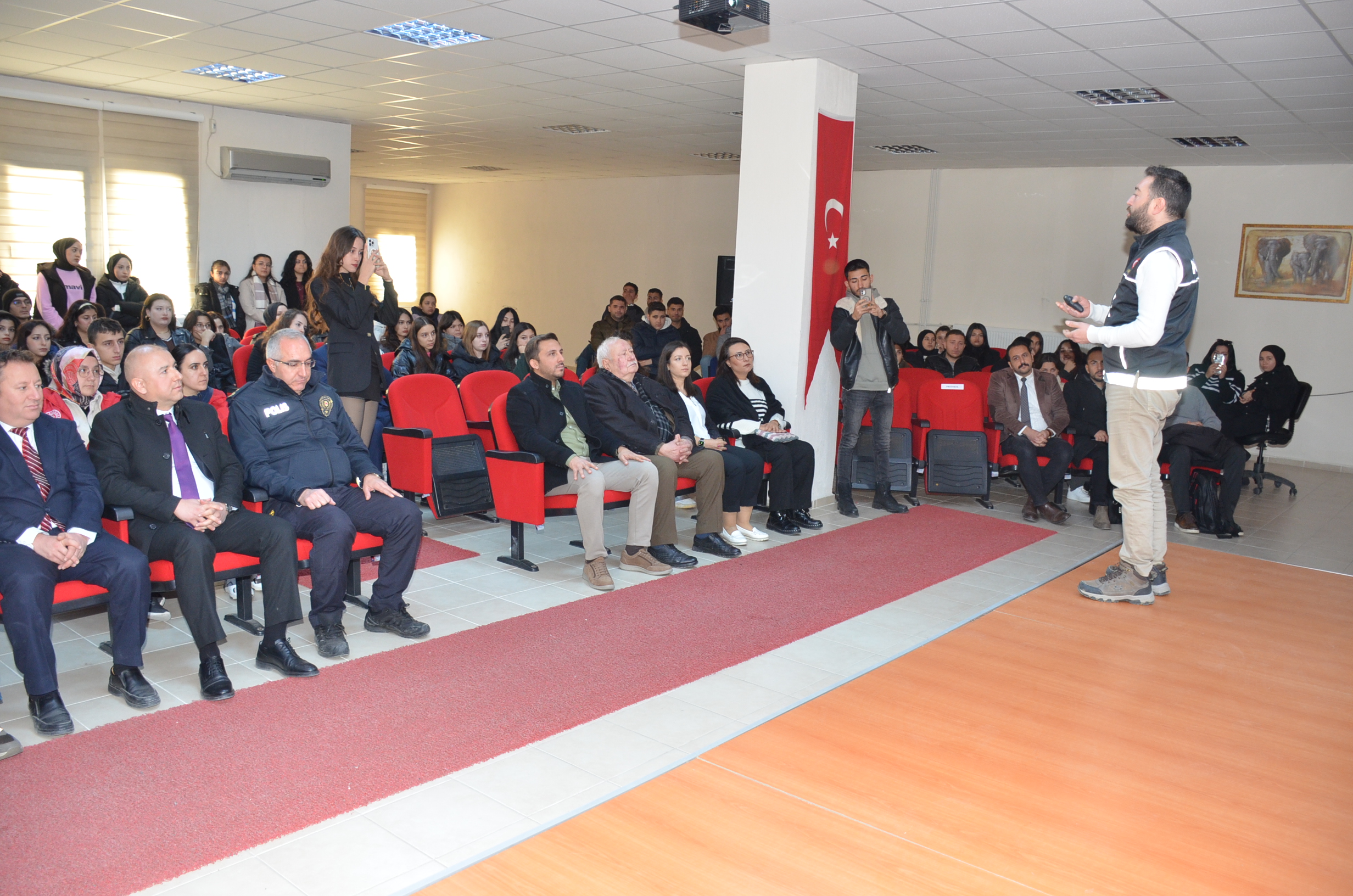 Seminerde öncelikle öğrencilere uyuşturucu bağımlılığı nasıl başlar ve bağımlı kişinin hal ve hareketlerindeki değişiklikler anlatıldı. Yoğun katılımla gerçekleştirilen seminerde öğrenciler ve öğretim üyeleri tarından sorulan sorularda cevaplandı.