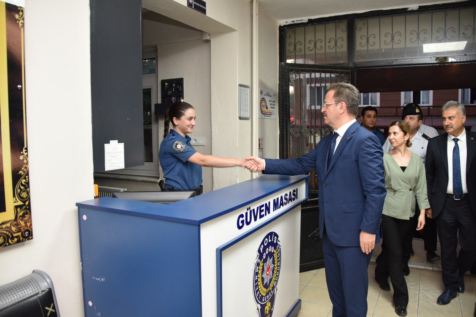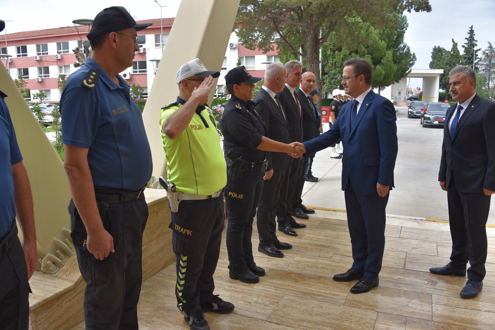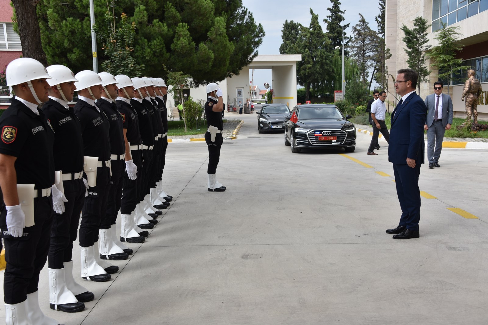 Vali Ünlü, İl Jandarma Komutanlığı’nı ziyareti sonrası İl Emniyet Müdürlüğü’nü ziyaret etti. Vali Ünlü’yü İl Emniyet Müdürü Fahri Aktaş ve emniyet personeli karşıladı.