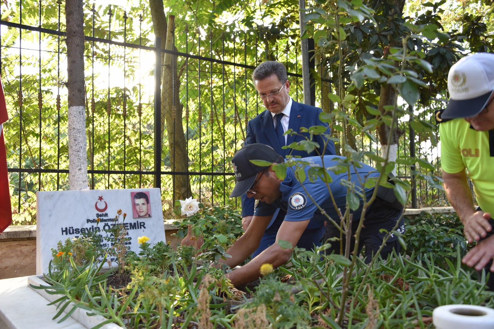 Garnizon ve Polis Şehitliklerini ziyaret eden Vali Enver Ünlü, şehitlerimizin mezarına çiçek dikerek için dua etti.