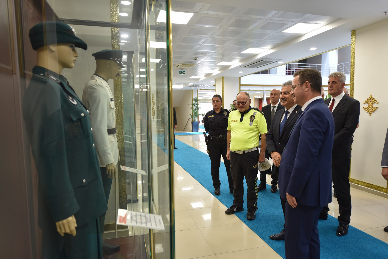 Ziyarette Emniyet Şeref Defterini imzalayan Vali Ünlü, Emniyet Müdürlüğü binasının girişinde yer alan Manisa’da Sancak Beyliği yapan Osmanlı Padişahları ve Şehzadeleri köşesi ile eski dönemde polis memurlarının giydiği kıyafetlerin sergilendiği alanı gezdi.