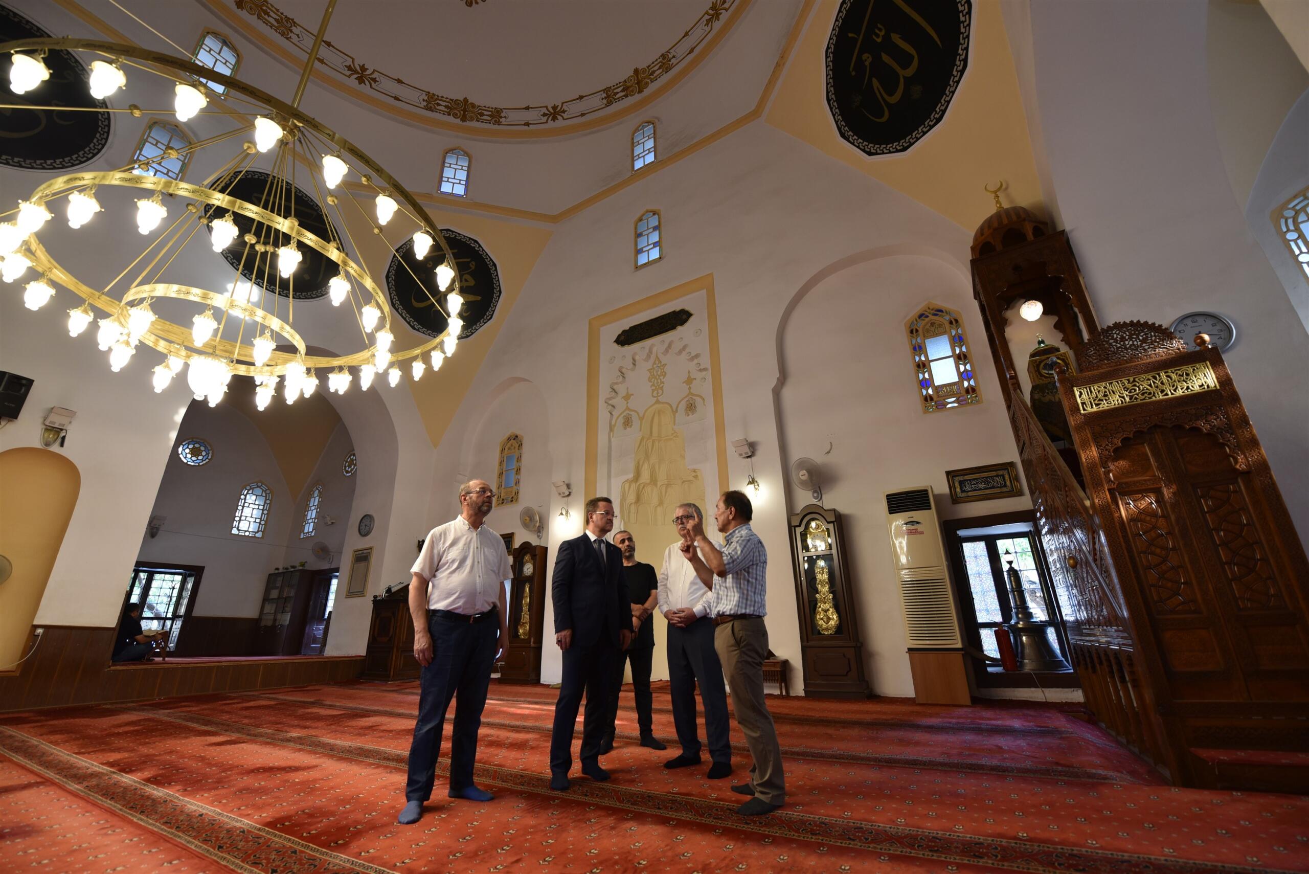 Vali Enver Ünlü, Manisa’yı fethederek Türk vatanı yapan Saruhan Bey’in Türbesi ve tarihi Hatuniye Camisinde incelemelerde bulundu.