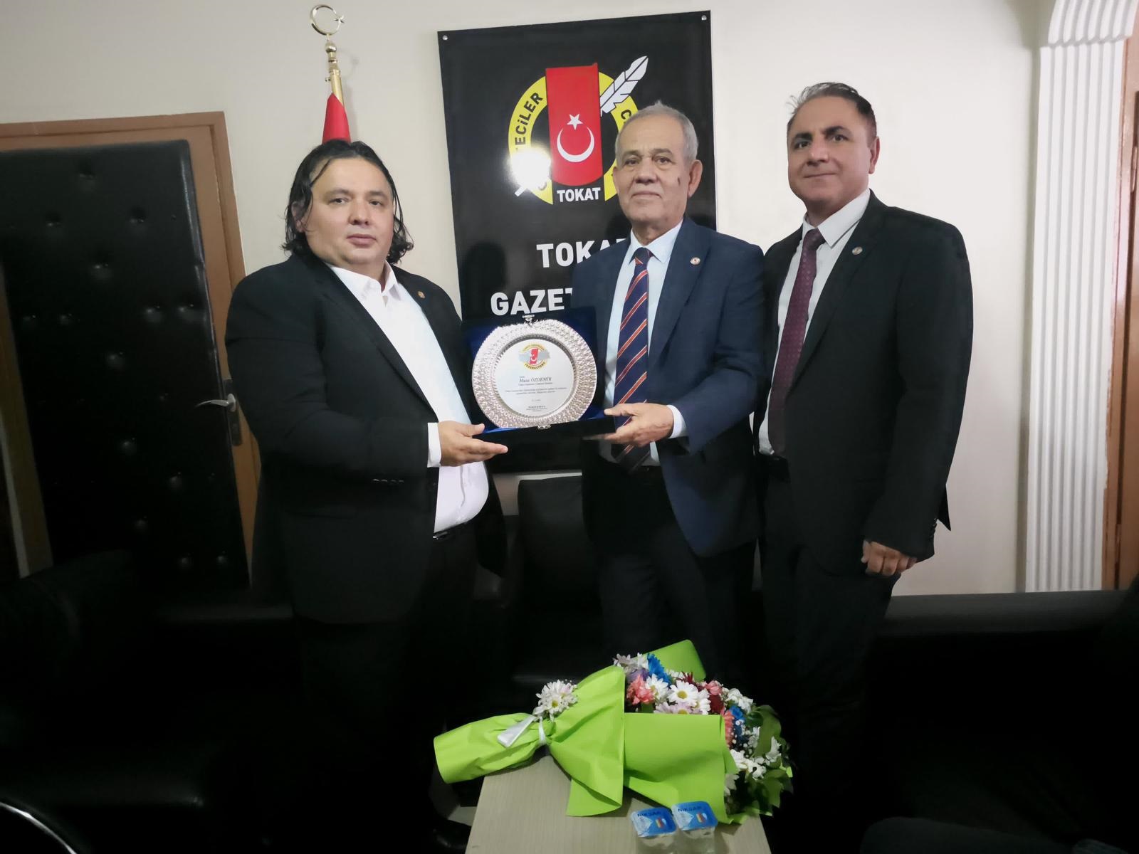 Türkiye Gazeteciler Federasyonu Genel başkanı Yılmaz Karaca ve Genel başkan yardımcısı Levent Altun, Tokat Gazeteciler Cemiyeti’ni ziyaret etti.
