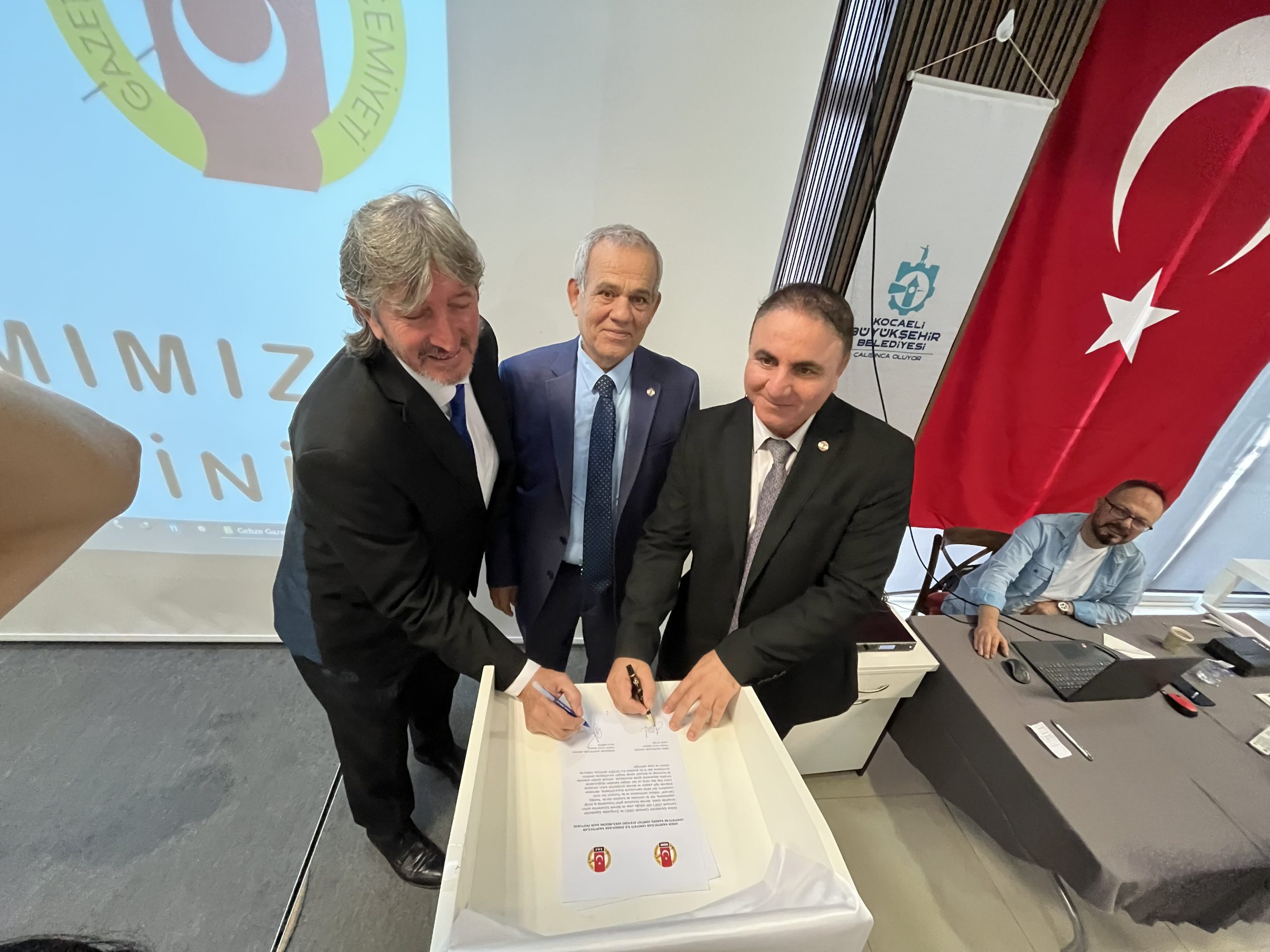 Kardeş proje kapsamında Zonguldak Gazeteciler Cemiyeti başkanı Derya Akbıyık ve Gebze Gazeteciler Cemiyeti başkanı Levent Altun arasında protokol imzalandı. Genel başkan Yılmaz Karaca eşliğinde gerçekleşen törende imzaların ardından ZGC Başkanı Derya Akbıyık Zonguldak Belediye Başkanı Tahsin Erdem’in selamlarını ileterek kendisi adına Zonguldak’tan getirdiği Zonguldak’ın simgesi olan madenci anıtı heykelini Gebze başkanı Levent Altun’a hediye etti. Aynı şekilde Altun’da ZGC başkanı Derya Akbıyık’a plaket takdim etti.